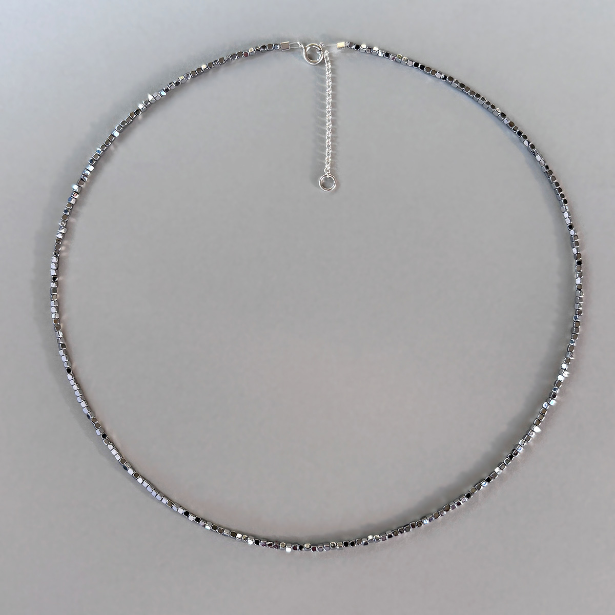 200 leiAdaugă în coșArgint 925, hematit (piatra semipretioasa) Dimensiuni: colier – 38.5 cm + 3 cm (extensie), pietre - 1.5x2 mm Proiectat si produs in studioul SOUL- Bucuresti Ambalaj inclus Livrare în România…