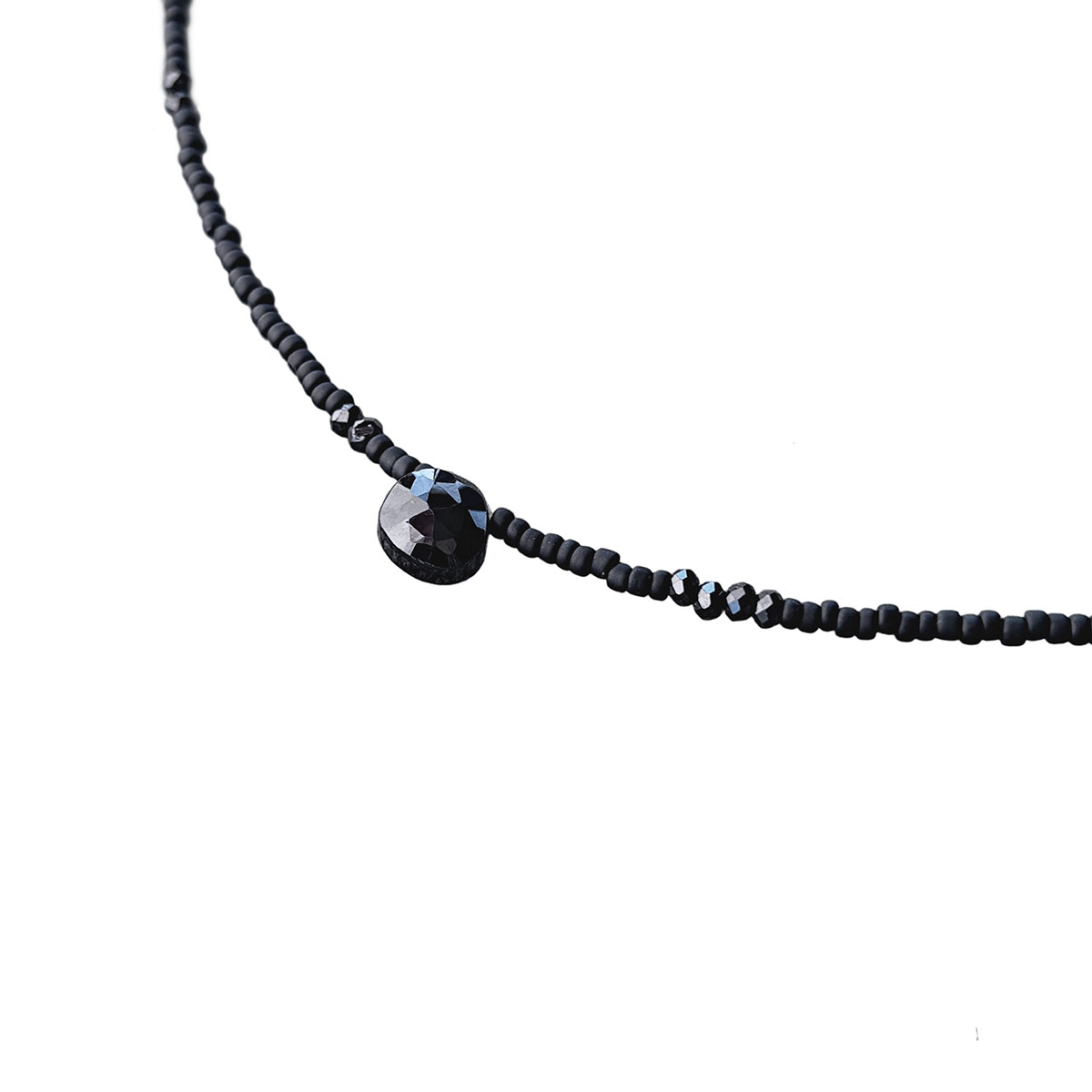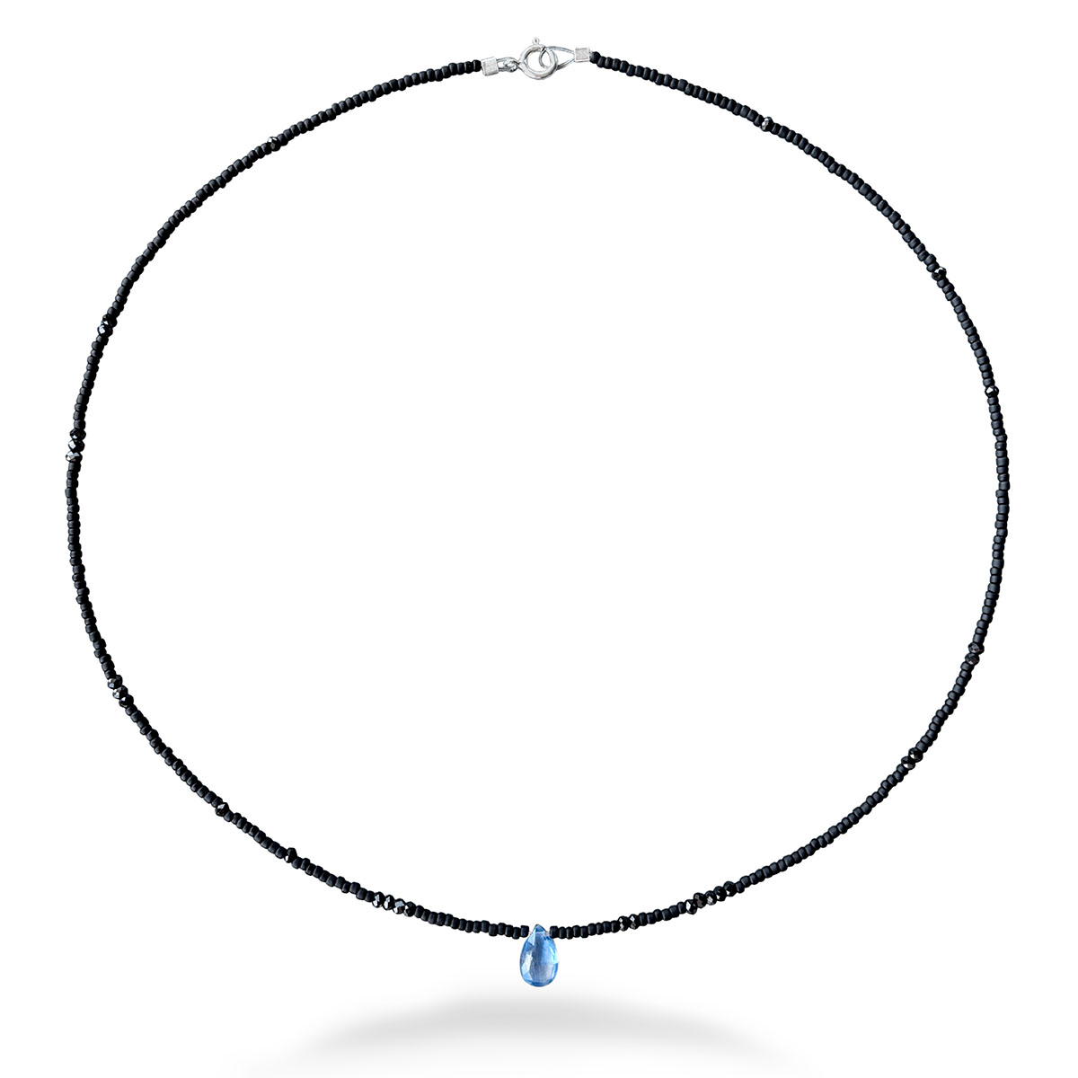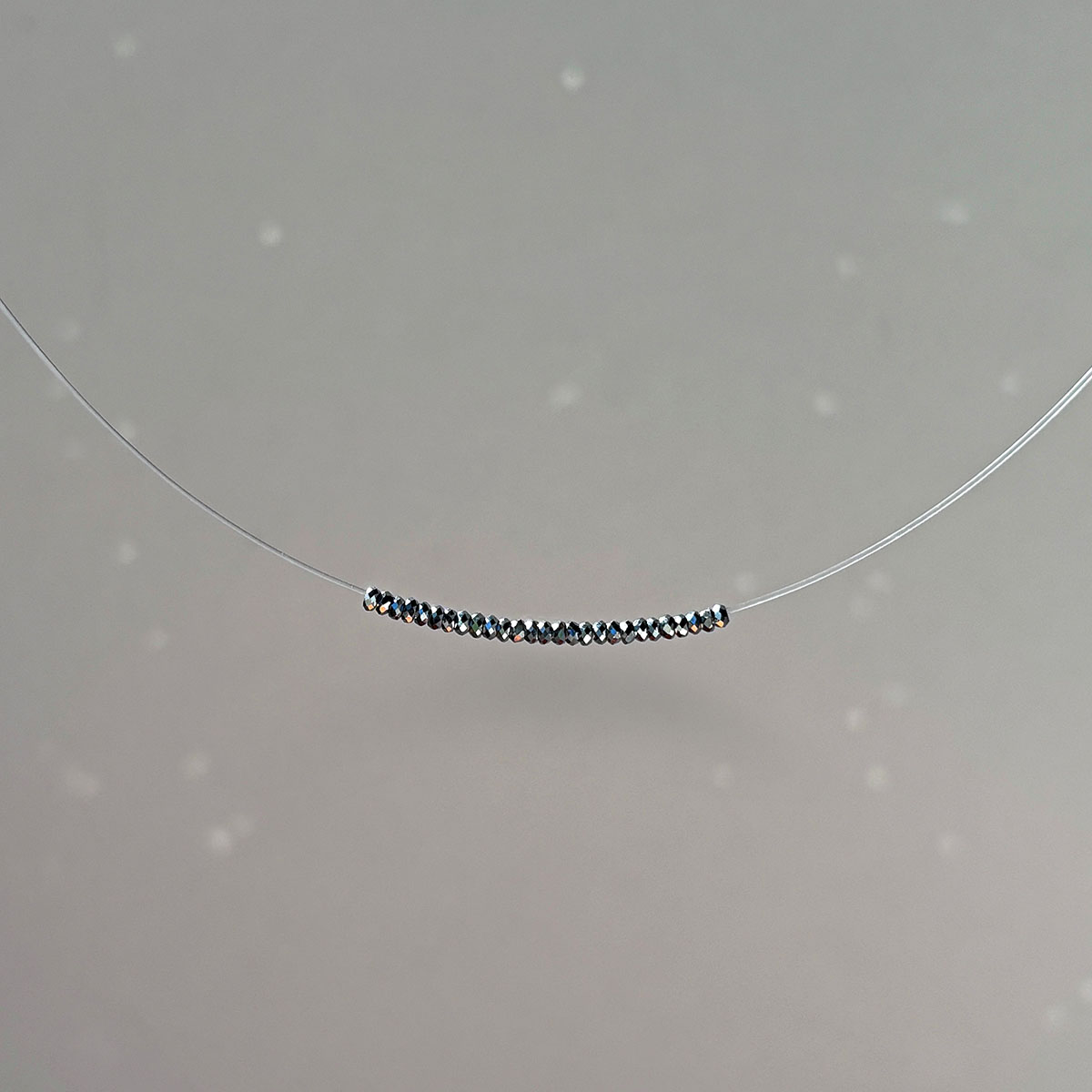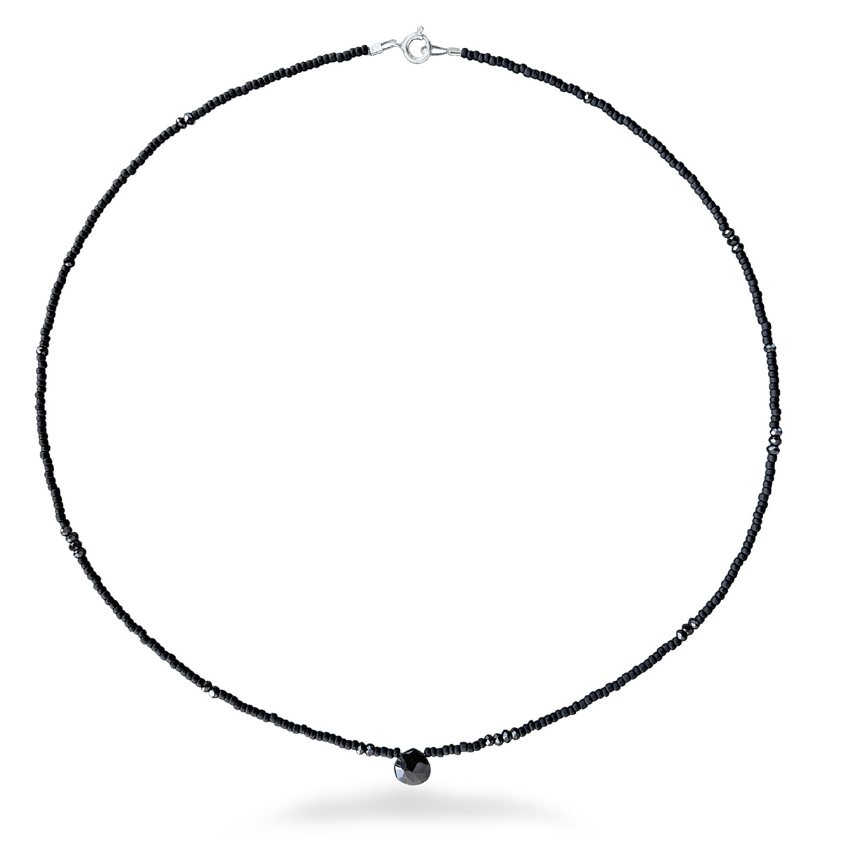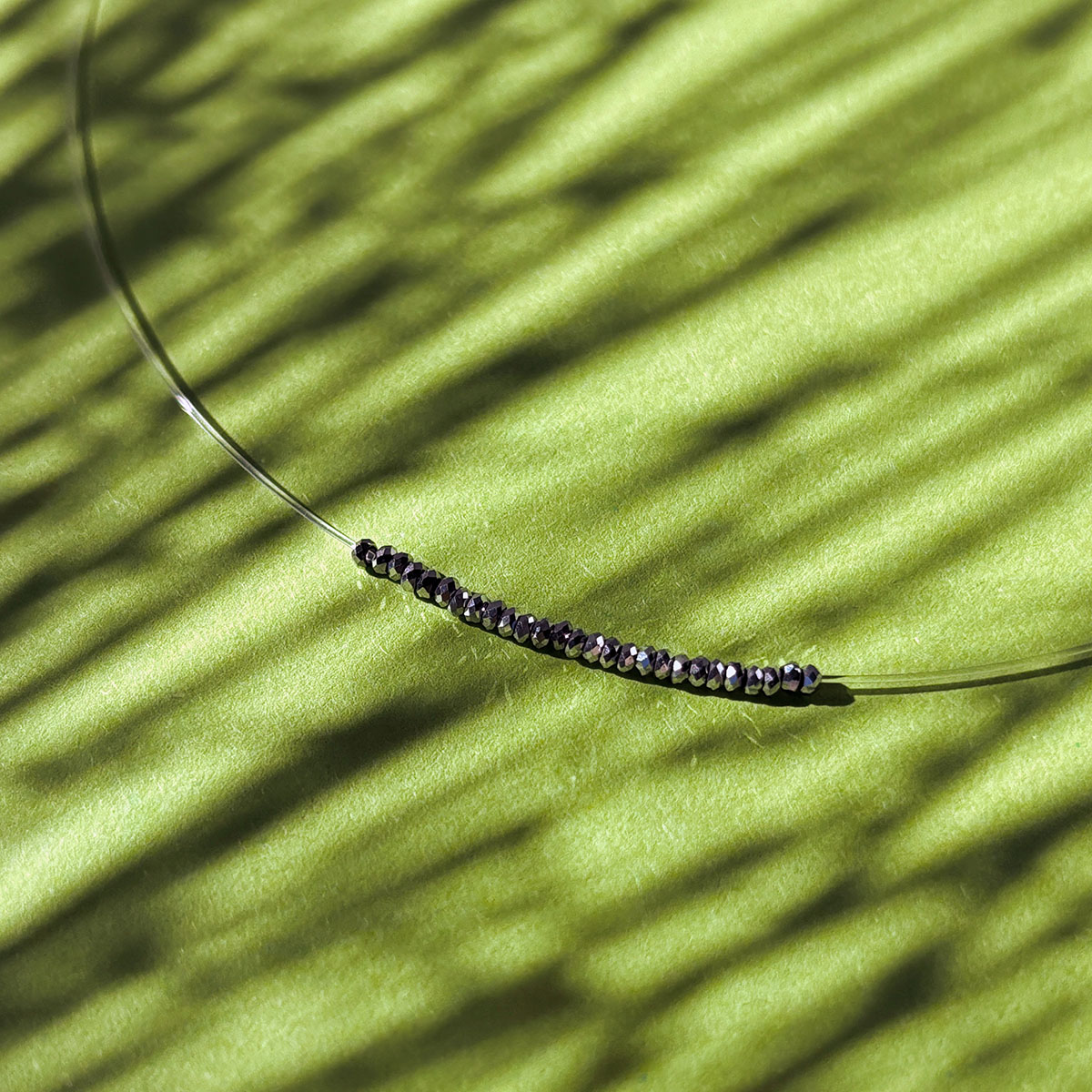 Argint 925, spinel negru fatetat (pietra semipretioasa), fir nylon transparent Dimensiuni: colier - 40 cm, pandantiv - 8 mm, diametru pietre - 2 mm Proiectat si produs in studioul SOUL-…