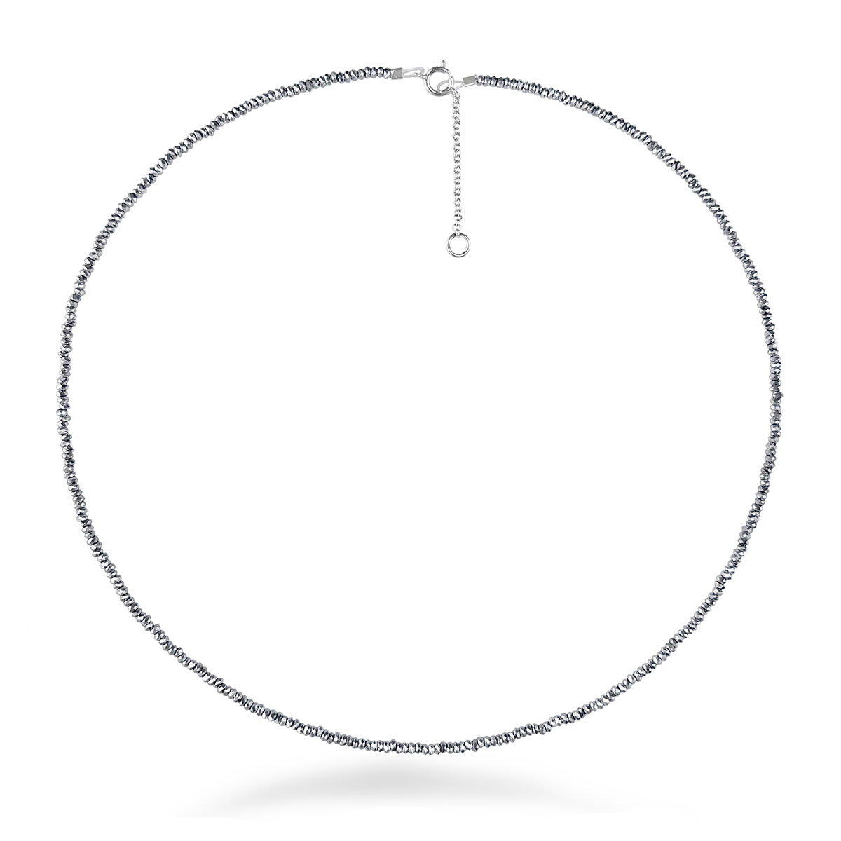 Argint 925, hematit (piatra semipretioasa) Dimensiuni: colier – 36 cm + 3 cm (extensie), pietre - 1.5 mm Proiectat si produs in studioul SOUL- Bucuresti Ambalaj inclus Livrare în România…