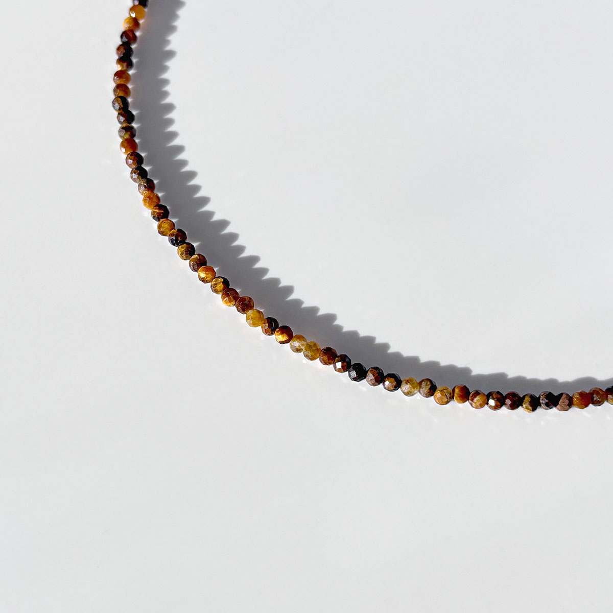 Argint 925, ochi de tigru (piatra semipretioasa) Dimensiuni: colier – 38 cm + 3 cm (extensie), pietre - 2.5 mm Proiectat si produs in studioul SOUL- Bucuresti Ambalaj inclus Livrare…