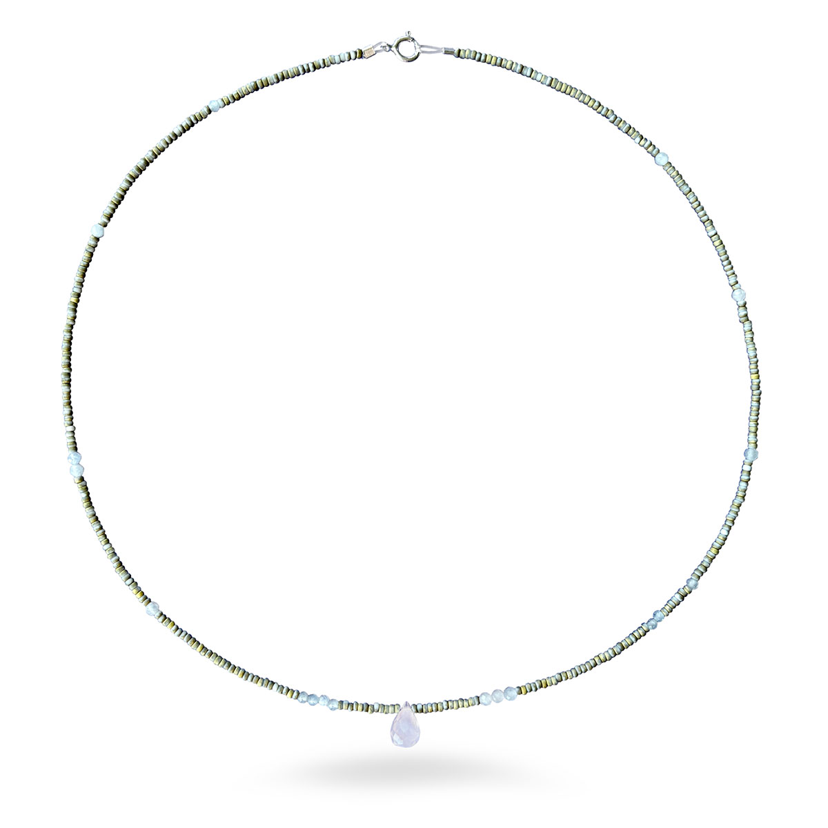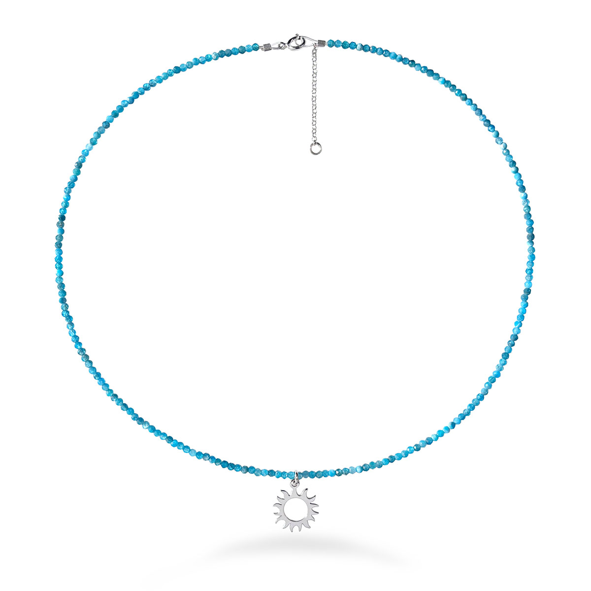Argint 925, apatit (piatra semipretioasa) Dimensiuni: colier – 38 cm + 3 cm (extensie), pietre - 2 mm Proiectat si produs in studioul SOUL- Bucuresti Ambalaj inclus Livrare în România…