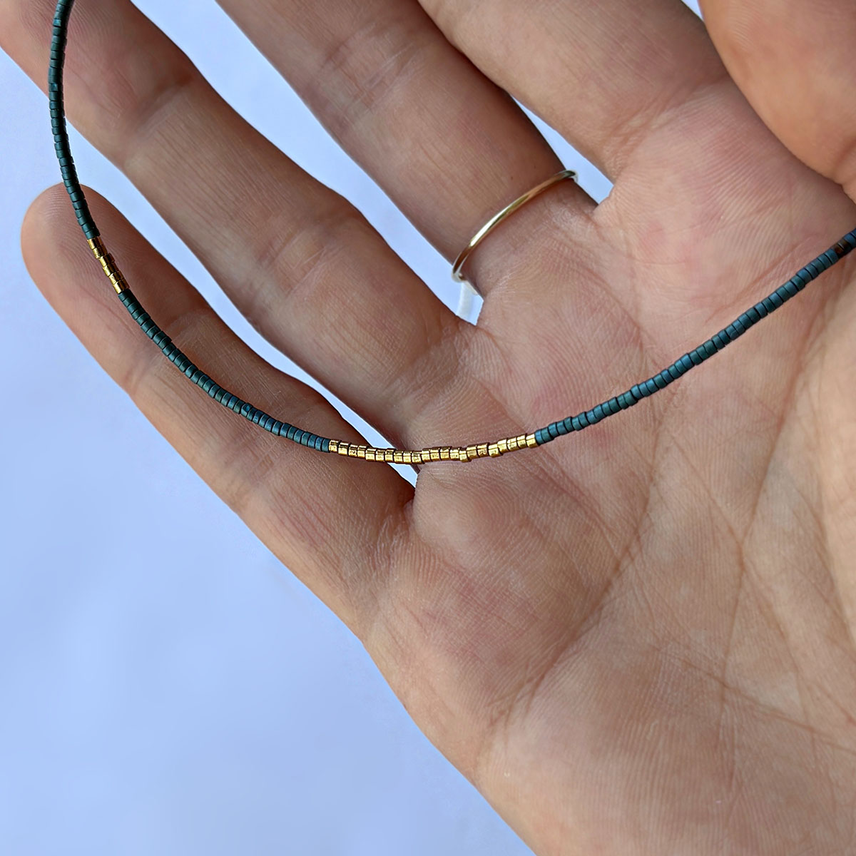 Argint 925, perle de sticla miyuki Dimensiuni: colier - 39 cm, perle - 2 mm Proiectat si produs in studioul SOUL- Bucuresti Ambalaj inclus Livrare în România prin curier (1-2…