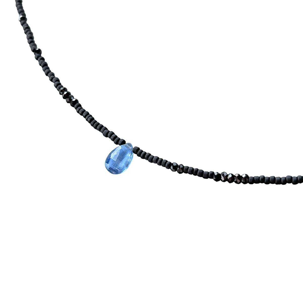Argint 925, spinel negru fatetat (pietra semipretioasa), fir nylon transparent Dimensiuni: colier - 40 cm, pandantiv - 6 mm, diametru pietre - 2 mm Proiectat si produs in studioul SOUL-…