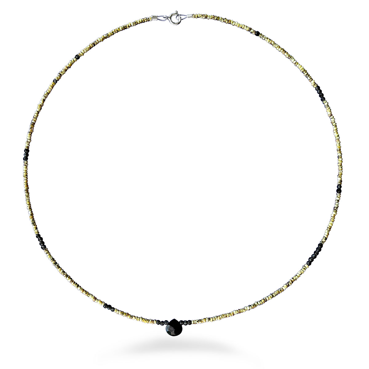 Argint 925, spinel negru (piatra semipretioasa) Dimensiuni: colier - 39 cm + 2.5 cm (extensie), diametru pietre - 2mm Proiectat si produs in studioul SOUL - Bucuresti Ambalaj inclus Livrare…