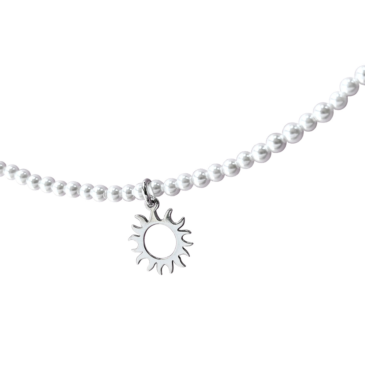 Argint 925, perle de scoica, fir nylon transparent Dimensiuni: colier - 40 cm, pandantiv - 8 mm, diametru pietre - 2 mm Proiectat si produs in studioul SOUL- Bucuresti Ambalaj…