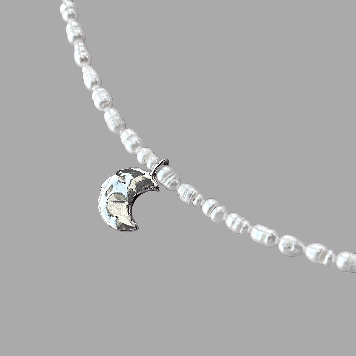 Argint 925, perle de cultura (calitate AAA), fir nylon transparent Dimensiuni: colier – 40 cm, perle - 2-3 mm, pandantiv – 12 mm Proiectat si produs in studioul SOUL- Bucuresti…